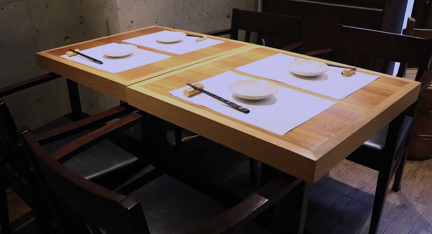 テーブル席はお二人様から数名様のグループまで対応可能。シーンに合わせてお使い分けください。